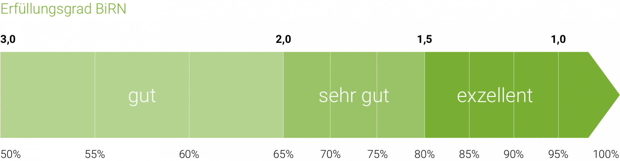 Die Nachhaltigkeit wird dabei auf Basis von 19 objektiven Kriterien ermittelt. Mithilfe des BiRN-Systems lassen sich sowohl kleinere Gebäude mit weniger als fünf Wohneinheiten (BNK) als auch größere Projekte ab fünf Wohneinheiten (BNG) bewerten. Weiterführende Details dazu finden Sie unter www.bau-irn.com.